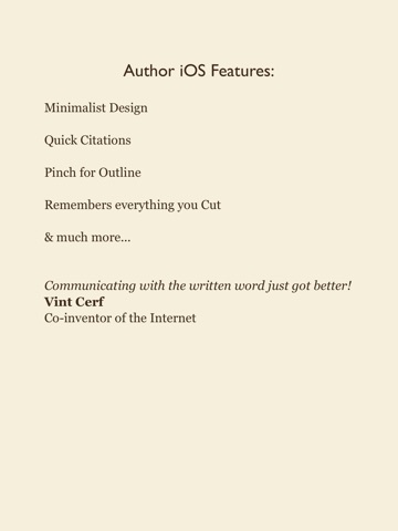 Author is an iOS native word processor with an uncluttered workspace and powerful interactions:
