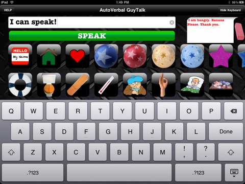 3 ways to speak: (1) 100s of built-in phrases in over a dozen categories (2) Program several buttons to speak your CUSTOM messages such as your name, address, family, etc. (3) Type ANY message and have it spoken using TEXT-TO-SPEECH! Empower yourself or people with Autism & Non-Verbal patients you care for! One price for iPad, iPhone & iPod touch!