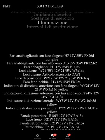 Le info tecniche sono suddivise in;