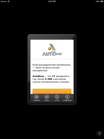 AutoBoss - клуб, на котором собираются порядка сотни человек, среди них: первые лица автомобильных компаний, собственники, генеральные директора, управляющие , руководители подразделений. Экспертами для выступления приглашаются только авторитетные в автобизнесе люди. Не теоретики, а только практики, рассказывающие о своем личном опыте решения той или иной проблемы. Как правило, на этих мероприятиях присутствует пресса. Многие наши гости приходят к нам не только ради самих выступлений, но и еще, чтобы во время кофе-брейка и фуршета, иметь уникальную возможность познакомиться поближе и обсудить наиболее заинтересовавшие вопросы конфиденциально. Согласитесь, это тоже важно.