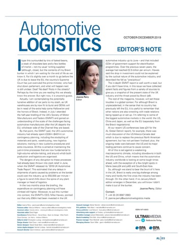 Automotive Logistics is the only global print magazine dedicated to the strategy, management and movement of components, finished automobiles and service parts, from tier supplier to assembly plant and on to the dealer, and everything in between. Automotive Logistics also hosts the most important annual conferences for senior management within the global automotive logistics sector: in Europe, China, Russia, Mexico, North and South America and India.