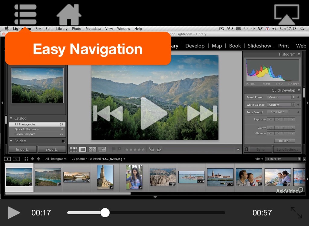 Saving the best for last, Martin wraps up this course by showing how quickly and easily you can organize, playback, edit and export your video clips! Yes... you read it right! Video!?!... Video can now be handled directly in Lightroom thanks to the new Mercury Video Playback Engine available to all Adobe Creative Suite family members.