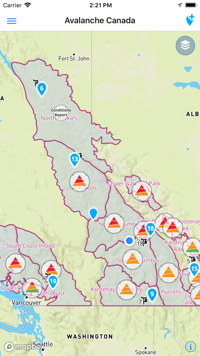 Improved decision-making information for winter backcountry users. An interactive map gives you access to layers of geo-tagged information, including daily regional avalanche forecasts.