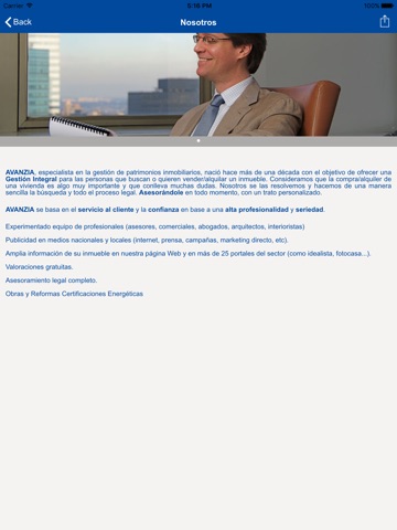 AVANZIA, especialista en la gestión de patrimonios inmobiliarios, nació hace más de una década con el objetivo de ofrecer una Gestión Integral para las personas que buscan o quieren vender/alquilar un inmueble. Consideramos que la compra/alquiler de una vivienda es algo muy importante y que conlleva muchas dudas. Nosotros se las resolvemos y hacemos de una manera sencilla la búsqueda y todo el proceso legal. Asesorándole en todo momento, con un trato personalizado.