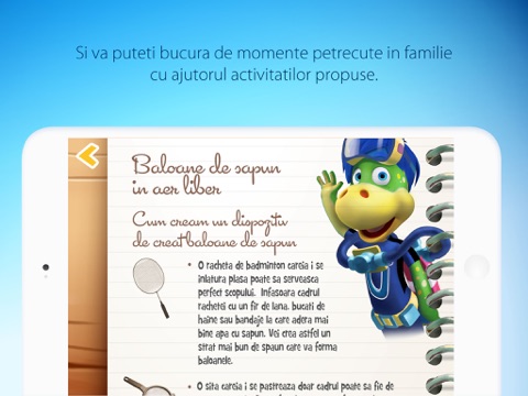 Aplicatia ofera activitati si povesti de care se pot bucura si parintii alaturi de copil. O reteta de tort sau povesti amuzante si interactive sunt cateva exemple de momente pe care le puteti petrece impreuna cu copilul.