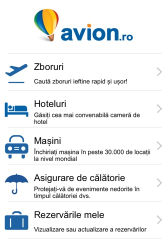 Planificați-vă călătoriile prin intermediul iPhone-uluil dvs. Acum, cu aplicația iPhone Avion.ro, puteți căuta și rezerva, cu ușurință, bilete de avion, hoteluri și mașini.