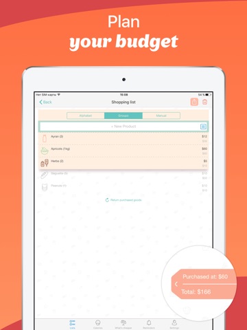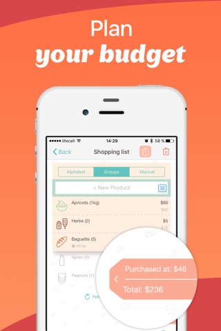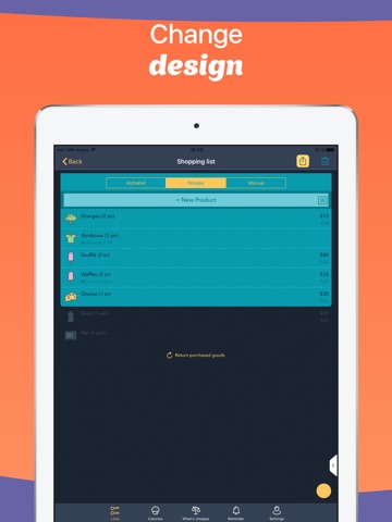 • Choose sort-by option for your shopping list: in alphabetical order, by groups or manual sorting.