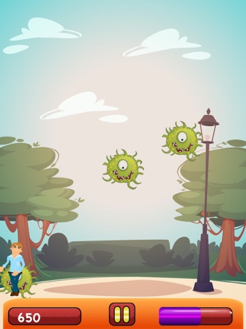 Tilt the device from side to side to move your man and avoid being clobbered. Its not as easy as it sounds, especially since the viruses falling around you are coming at a fast pace and are bent on destroying you.