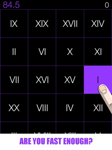 Try to click the roman numbers in ascending order quickly and create a record. Beat your friends scores on game center.
