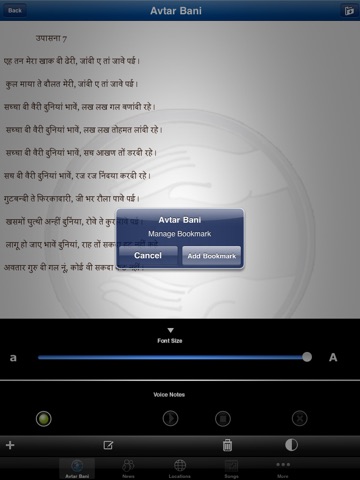 Normally, a verse from the Avtar Bani is read out before every discourse in most congregations (except when His Holiness Himself is giving the discourse). The verses are also read out at the beginning of each congregation. Devotees are however free to sing/read these verses as hymns anytime they prefer for personal spiritual enlightenment.