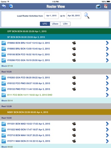 -Roster view: Display the roster in an easy to read duty period format. Ability to view the duties in either UTC or local base or local station.