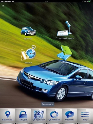 Это приложение позволит Вам выбрать нужную модель из большого парка автомобилей, просмотреть характеристики автомобиля и заказать его онлайн. Также Вы можете позвонить нам прямо из приложения, а благодаря функции навигации Вы легко найдёте нас. И самое главное: у владельцев приложения есть дополнительные скидки!!!