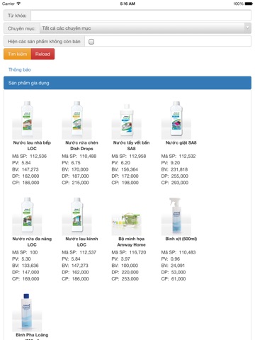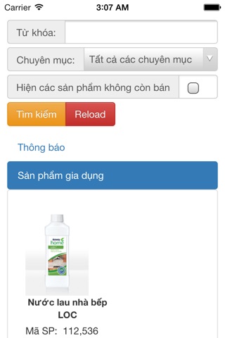 Hiển thị danh sách các sản phẩm. Có thể dùng offline (không cần internet) sau khi load dữ liệu trong lần đâu tiên sử dụng app.