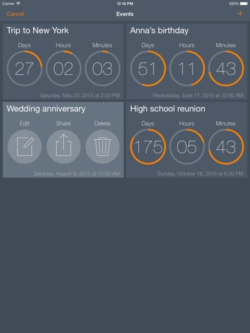 - Share events with your friends, even if they dont have the app installed.