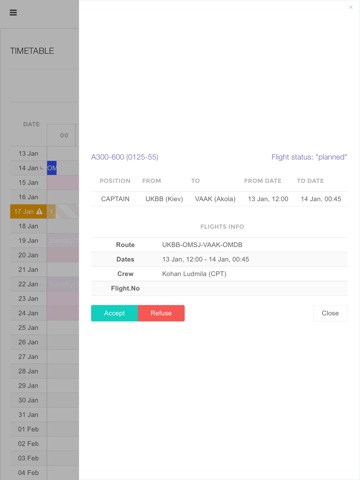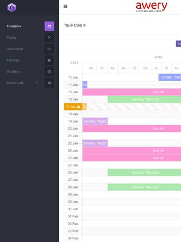 Crew Portal is a tool allowing all crew members to easily access and manage their own flight schedule, check compliancy to flight and duty limitations, track days off and validity of documentation and trainings.