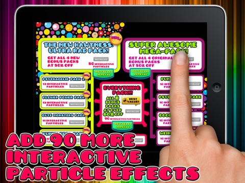 Welcome to Awesome! Awesome is a collection of interactive particle effect / screen savers specially crafted to give you, your kids, and maybe even your cat hours of enjoyment. Awesome is a great way to show off your iPhone, iPod or iPad to friends and family making them instantly jealous of the killer technology you possess. These psychedelic visuals will leave you wanting more but still satisfy your inner hippie.