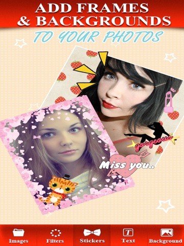 1. different cute cartoons, stickers, wallpapers, picture frames to decorate your photos