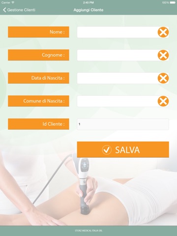 L app permette di memorizzare info sui clienti relativamente ai trattamenti effettuati presso il centro AWT Storz.