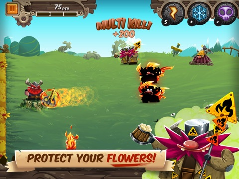 Help Redbeard defend his precious flowers from hordes of invading Vikings, making use of his sharp axe and unparalleled throwing skills, spells from the Gods and awesome power-ups!