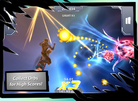 Glide through the city on your choice of 10 different hoverboards currently available, each with special attributes to help you collect more energy orbs and blast obstacles out of your way. Discover the mysteries of the Nightstream through 15 levels of fast-paced action while executing epic jumps and lightning-quick moves to collect as many points as possible!