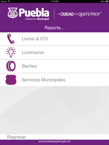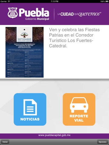 No uses teléfonos ni otros dispositivos mientras conduces. Reporta luminarias, baches y otros servicios correspondientes al Municipio de Puebla con esta aplicación. Reporte vial es el módulo informativo con el que podrás estar al tanto de cierres de vialidades en la ciudad de Puebla para que puedas planear tu ruta con anticipación y evitar congestionamientos. También podrás mantenerte al tanto de noticias y la cartelera cultural que ofrece el H. Ayuntamiento de Puebla. Antes de usar la aplicación: El uso de esta aplicación consume datos de Internet en tu dispositivo.