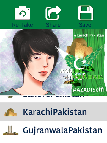 Azadi Selfie is a fun and simple way to make beautiful photos in seconds. celebrate 14 August with your friends by sharing your photos With The Area You Belongs.
