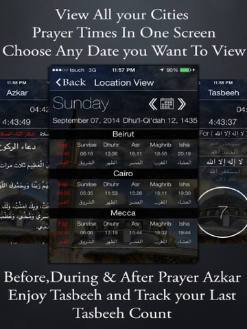 7-Before,During and After Prayer Azkar with fabulous view that showing the remaining time for the next prayer.