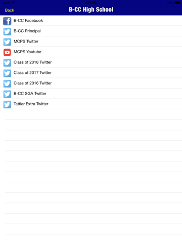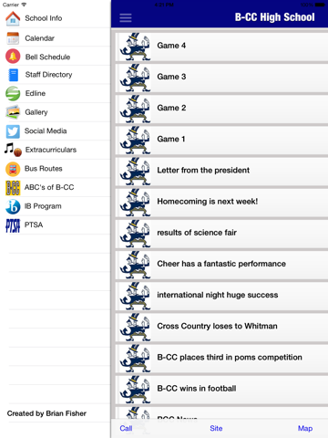 The B-CC mobile app is custom built to improve communication between the school, students, parents, and faculty. The app allows students and staff to have easier access to information that is necessary in order to be successful at B-CC. This app was created by Brian Fisher of Fisher Apps.