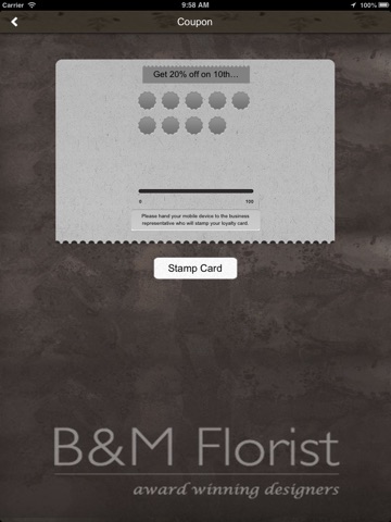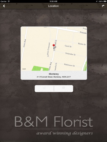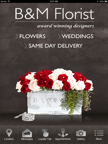 B & M Florist in Monterey. Our app has features such as Loyalty Program which gives you a $20 discount on your 10th visit. Each access to our contact us including directions, trading hours & more. A Share your snaps feature, which lets you share your pictures of the beautiful floral arrangements you receive & much more!