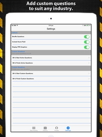 * Customizable Checklists: Create your own questions for tailored risk assessments.