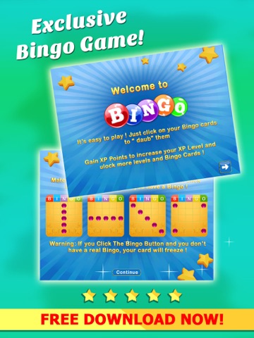 Come & play free Bingo & tons of fun are waiting for you. Come back daily and earn additional BONUS coins & thats just the beginning! Each game you win will awards experience to level up & unlock new level! Unlock all the levels & become the CHAMPION!