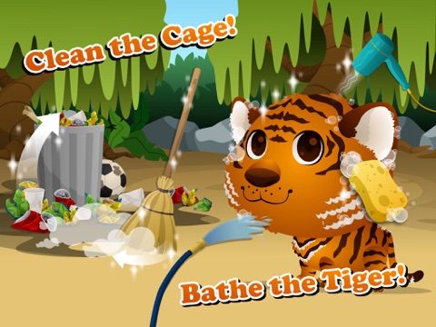 Oh no! Evil zoo visitors littered where Baby Tiger lives! Quick, collect the garbage and throw them into dumpster. Sweep the cage with the broom and have fun showering Baby Tiger!