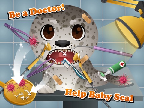 Poor Baby Seal is in Zoo Hospital and needs Zoo Doctor care. Take the tweezers and carefully pick up sea urchins. Place band-aids and bandage over the wounds. Play Zoo Dentist and make Baby Seal smile again!
