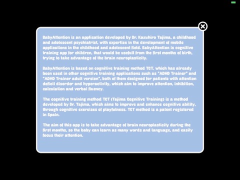 We believe that a cognitive training tool specifically designed to train the babies brain, as Baby Mind Trainer can help improve not only the attention in babies, but can also be useful learn words in different languages.