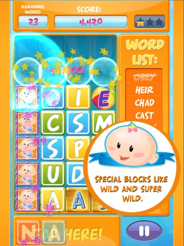 Experience the child like delight of 4 letter word matching and play Baby Blocks today! Tap or swipe letters, form words and advance through 100 exciting levels and 3 challenging skill levels. Learn new words every day with the word of the day feature. Create huge scores with multipliers like speed and color bonus. Use powerful boosters like freeze time to aide you in your word matching endeavors. It’s time to swap those blocks. Baby Blocks, it’s wordilicious!