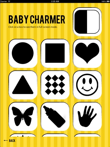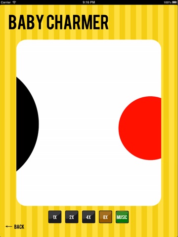 This application has 3 animations of high contrast shapes that scroll across the screen at four different speeds. You can place your iPhone, iPad or iPod in a fixed position and watch as your baby tracks the symbols and shapes. This is a revolutionary twist to the traditional high-contrast baby simulator.