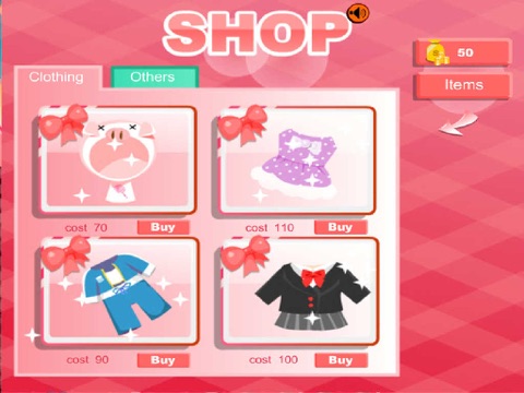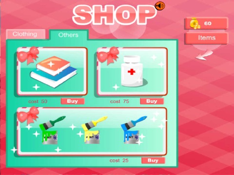 If you want some clothes, Click "shop"--"item", and click the cloth which you want. "Books" are same with "clothes".