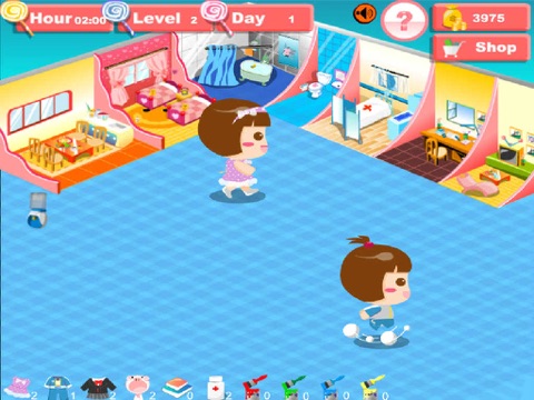 Click child status bar,---"bored", then child will sleep, play, study by automatic, if not up figure, child refuse.