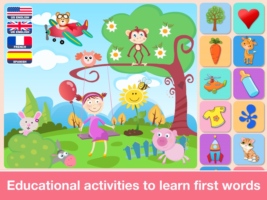 ***** Let your toddler discover world full of fun educational games and learn first words in US English, UK English, Spanish, and French.