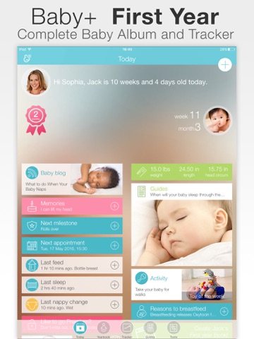 • Add your baby’s name & photo to make your baby’s development tracker more personal