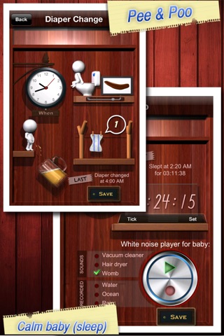 · Diaper change section helps parents to save the time of babys pee or poo as well as how many diapers have been used.