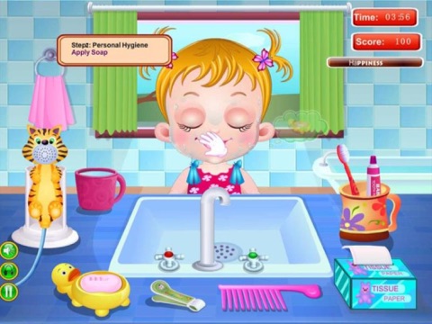 Now it is time to teach Baby Hazel about personal hygiene. In this game, Baby Hazel learns different hygiene care activities such as washing and ironing of her cloths, cleaning herself after outdoor game play and meal time hygiene. Help Baby Hazel to learn different hygiene care activities by fulfilling her needs. Check the hint bubble to know her needs.