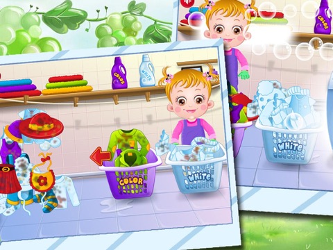 This cute baby is about to learn a lesson in what it takes to do chores around the house. Its never too early to learn how to be responsible and keep a clean home. Thats why youre going to walk this adorable baby through washing his soiled laundry in this fun skill game for kids. Separate the laundry so that the colors dont bleed all over your white clothes, then wash each load with the correct detergent to remove stains and wash away any dirt. Thanks to you, this baby will always have clean clothes to play in! Have fun!