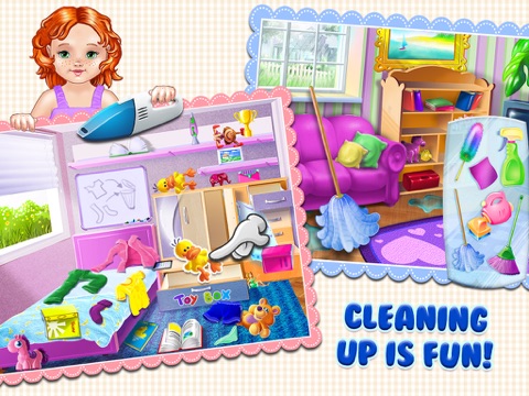After 6 million of you joined in on their previous adventures, it’s time to head home... but the fun’s never over! In Emma, Sophia, Olivia, and Kim’s 5th adventure it’s time to help around the house! You can help with doing the laundry, matching the socks, hanging the clothes to dry on a windy day, cleaning the TV room and the kid’s room, and even plant flowers that giggle when they’re all grown up! Helping around the house has become so much more fun with these awesome educational games!