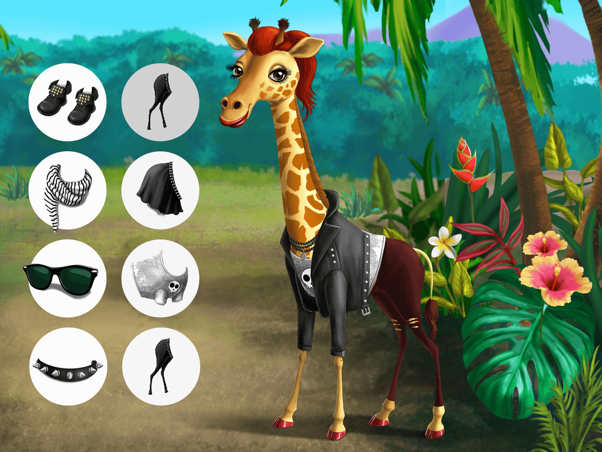 Fashionista giraffe Rachel wants her favorite day spa treatments! Wash and shave her long hairy legs. Shorten, shave, cut, dye and wash her hair. Polish Rachel’s nails red and surprise her with bright makeup. Play giraffe dress up, choose from rock star clothes and accessories in 7 categories, and create Rachel a new rock style outfit!