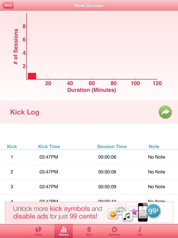 This app doesnt work. Each time I try to log the first kick of a session the app crashes. Not worth the price I paid (free)