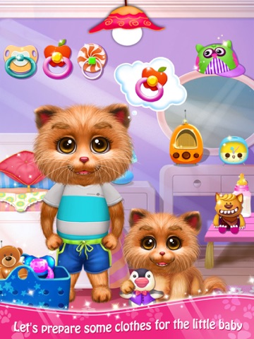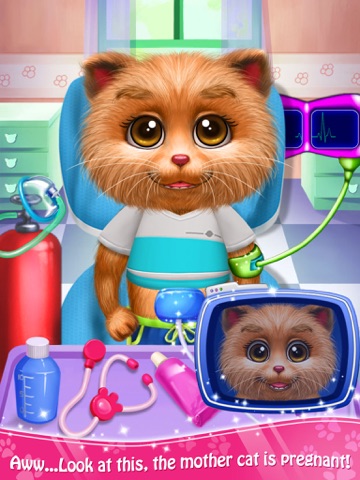 Open the game and start with the check-up for the mommy cat. Oops, she feels breathless, hurry to drag the oxygen mask to her mouth. Then we need to check the heartbeat. Ok, everything is normal. And let’s do the B-ultrasonic examination. Wow~ see~ thats the kitten, it seems that she is smiling to you. Well, finally its time to deliver the baby. Looks like the mommy is kind of nervous, please wipe off the sweat for her. Amazing! The kitten is born. Now apply the clips on the umbilical cord and use the scissors to cut it. Ok, lets deal with the wound and feed the kitten some medicine. Wow, therere many nice beds, pick one for the little one. And it may be hungry, you can feed it some milk or prepare a pacifier for it. Oh, the little peanut feels sleepy. Good night and wish you a good dream, dear.