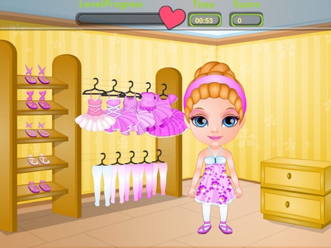 This afternoon, this pretty ballerina is going to have an important performance and she wants everything to be perfect: her look and her dance. She took care of the dance, she repeated for weeks for this show but she cant decide on her outfit. She has lots of lovely outfits for dancing ballet and she needs you to help her choose the most beautiful dress for her. So, dress her up choosing the prettiest ballet outfit she has and then some matching shoes to complete her outfit. Also, you should do her hair, too and dont forget to add some pretty accessories. Enjoy dressing up this cute ballet dancer!