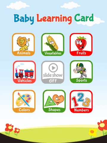 “Baby Learning Card” is a free flash card game for children between 1 and 5 years of age, It helps your child learn animals,fruits,vegetables,vehicles,sports,color,shapes and numbers in an enjoyable way.