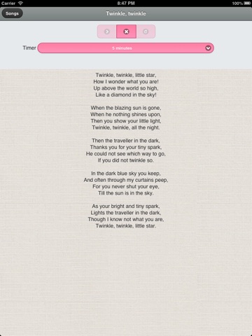 This is a nice app plenty of songs, but no offense the singer is horrible my 11 month old daughter tried to slap the phone because she didnt like it. I guess it will be okay for some people but to me I cant tell if its a man or woman singing and it sounds like someone trying to sing while yawning.